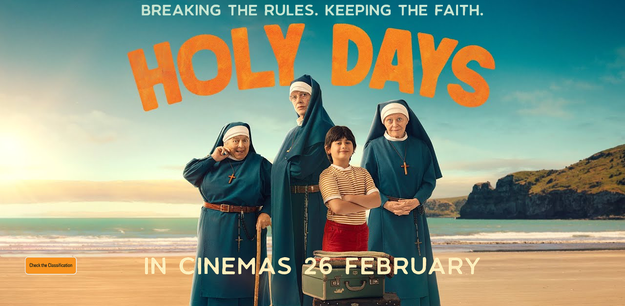 From the team behind the Kiwi hit Uproar, Holy Days is a hilarious, heartwarming 1970s dramedy with a star-studded cast: Judy Davis, Miriam Margolyes, and Jacki Weaver. When young Brian discovers plans to close a convent of delightfully eccentric nuns, he sets off on a wild road trip across New Zealand to save them. Packed with laughs, quirky characters, and heart, this is a joyful adventure the young at heart will adore.AdventurePT1H41MPG2026-02-26Judy Davis